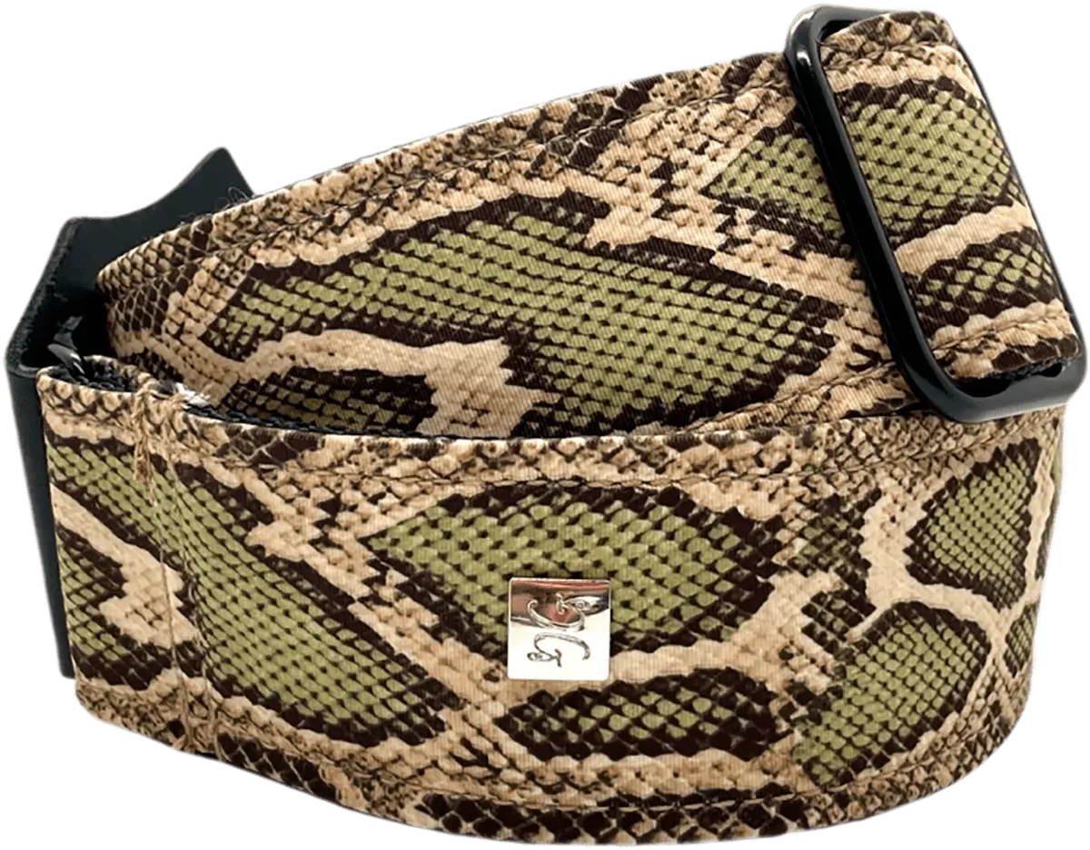 The Diamondback collection features a moleskin lining with a beautiful rattlesnake print in a selection of 4 vibrant colours. Each strap is unique because of the cut of the fabric, just as each snake is unique. Available in four vibrant colours. With a fully adjustable length of 65 inches, these straps are perfect for guitarists of all sizes! Their matte black finish welded metal fittings are free from heavy metals and harmful substances.