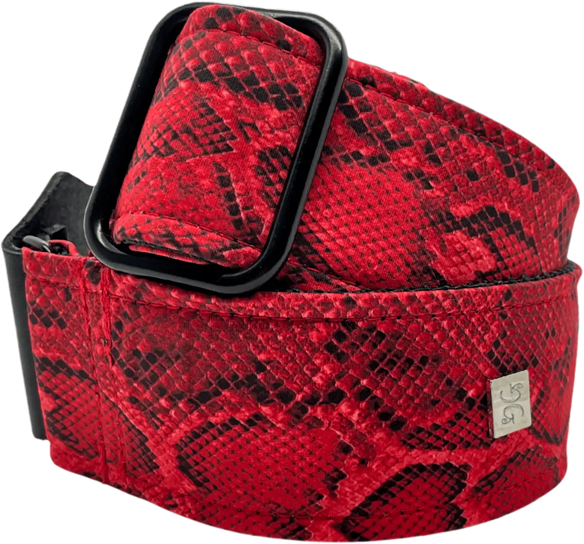 The Diamondback collection features a moleskin lining with a beautiful rattlesnake print in a selection of 4 vibrant colours. Each strap is unique because of the cut of the fabric, just as each snake is unique. Available in four vibrant colours. With a fully adjustable length of 65 inches, these straps are perfect for guitarists of all sizes! Their matte black finish welded metal fittings are free from heavy metals and harmful substances.