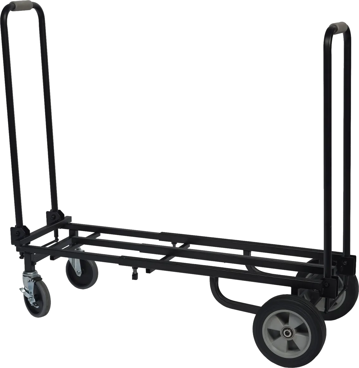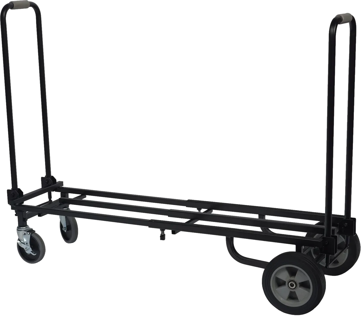 Musicians, DJs, technicians or contractors, forget the hassle of transporting equipment! With Algam Audio's TR-200 folding cart, moving up to 200 kg of equipment is as easy as 1-2-3, saving both time and energy. Robust, versatile and practical, it adapts to all your needs thanks to its telescopic steel structure and folding design.A sturdy, versatile cart for all your events.Algam Audio's TR-200 has been specifically designed to easily transport all types of material and equipment, from music gear to lighting systems and sound/DJ equipment. Designed with a sturdy telescopic steel frame, the TR-200 offers a maximum load capacity of 200 kg, making it ideal for both amateur and professional use. Whether you're a musician, DJ, sound technician or event organizer, the TR-200 is the ideal partner for your travels and performances.Move all your equipment with ease.Equipped with 5“ swivel front wheels (one with brake) and 8” rear wheels with rubber-reinforced surface, the TR-200 guarantees excellent maneuverability, essential on cramped stages, narrow corridors or uneven surfaces. The secure locking system with knurled screws and self-locking latches guarantees faultless chassis locking, giving you peace of mind when you're on the move.An adaptable platform to meet all your needs.The TR-200's extendable loading platform can be adjusted from 750 to 1200 mm, allowing you to tailor the cart to your specific needs. Its 320 mm width offers generous space for carrying a wide variety of equipment, from musical instruments to PA speakers. When folded, the cart measures 870 x 460 x 275 mm (including wheels), making it easy to store and transport.