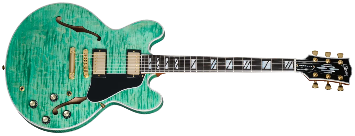 The Gibson ES-335 has always been known as an exceptionally versatile guitar. Regardless of your stylistic preferences or what the gig calls for, it can cover it with aplomb. The ES Supreme expands on that legendary versatility and adds features that take the ES™ to new heights of beauty, including a 3-ply body with a AAA figured maple top, Super Split Block mother-of-pearl neck inlays, gold hardware, and a striking new mother-of-pearl headstock inlay inspired by a design from the 1940s that was discovered in the Gibson archives. Smooth playability is ensured by the mahogany neck with its Rounded C profile and compound radius ebony fretboard, while the famous ES sonic versatility is enhanced even further with the addition of push/pull volume pots for coil splitting the Burstbucker™ Rhythm Pro and Burstbucker Lead Pro pickups. It all comes together to make this the ES that reigns supreme. A hardshell case is also included.