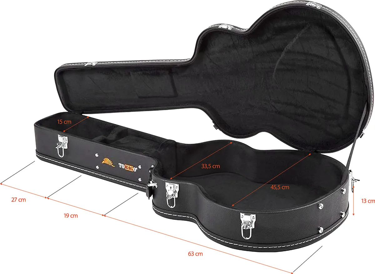 The case's interior is lined with plush, providing gentle protection for your guitar. The sturdy construction ensures safety during transport.