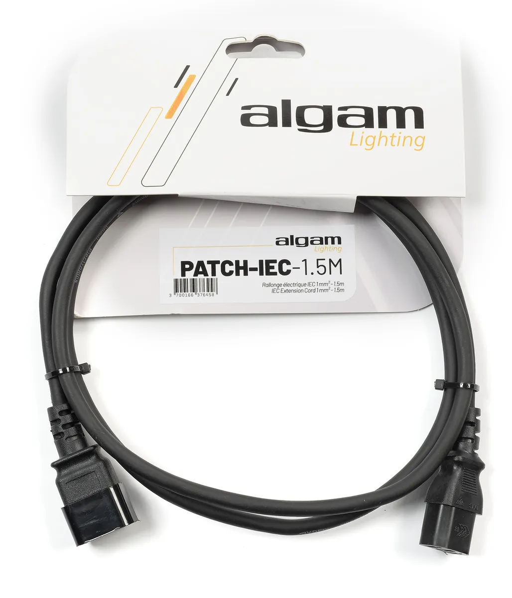 Algam Lighting's IEC power extension is ideal for powering light machines with IEC connectors over longer distances, or for daisy-chaining several light machines with suitable IEC inputs/outputs.