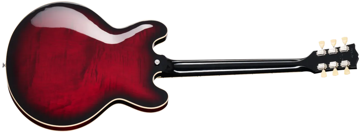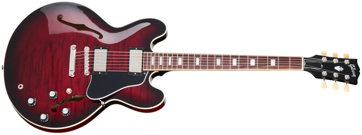 The Gibson ES-335 Figured is the perfect blend of form and function. Crafted with a maple centerblock and quarter-sawn Adirondack spruce bracing, players will be impressed by the lightweight feel and expanded range of tonal capabilities. Equipped with high-end appointments like our hand-wired control assembly with Orange Drop® capacitors, Gibson's new Calibrated T-Type humbucking pickups, Vintage Deluxe style tuners, and lightweight aluminum ABR-1 bridge and Stop Bar tailpiece anchored with steel thumbwheels and studs. The AAA figured maple is set off by beautiful Custom Color Series gloss finishes including Blood Moon Burst, Deep Ocean Burst, and Honey Amber.