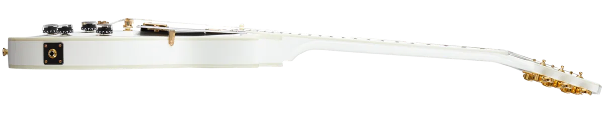 The Epiphone Les Paul ™ Custom has been updated and is now better than ever. Part of the Inspired by Gibson™ Collection, it honors the 1950s-era classic that was designed by Mr. Les Paul himself in 1954 as the "tuxedo" version of his groundbreaking solidbody masterpiece. It features an all-mahogany body, a mahogany neck with a refined Modern Medium C neck profile, an ebony fretboard with pearloid block inlays and medium jumbo frets, gold hardware, including a gold Epiphone LockTone™M Tune-O-Matic™ bridge and Lock Tone Stop Bar tailpiece, a pair of Epiphone's new Probucker™ Custom humbucker™ pickups, which are based on Gibson Custom's Custombucker humbucking pickups, and a larger Custom split-diamond inlay on the headstock. This Epiphone Inspired by Gibson model also has the 60s style Kalamazoo headstock, a Graph Tech® nut, era-appropriate wiring, and CTS® potentiometers. An Epiphone premium gig bag is now included to help keep your guitar safe when not in use and when traveling.