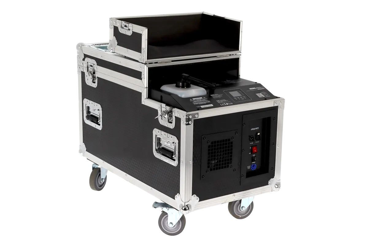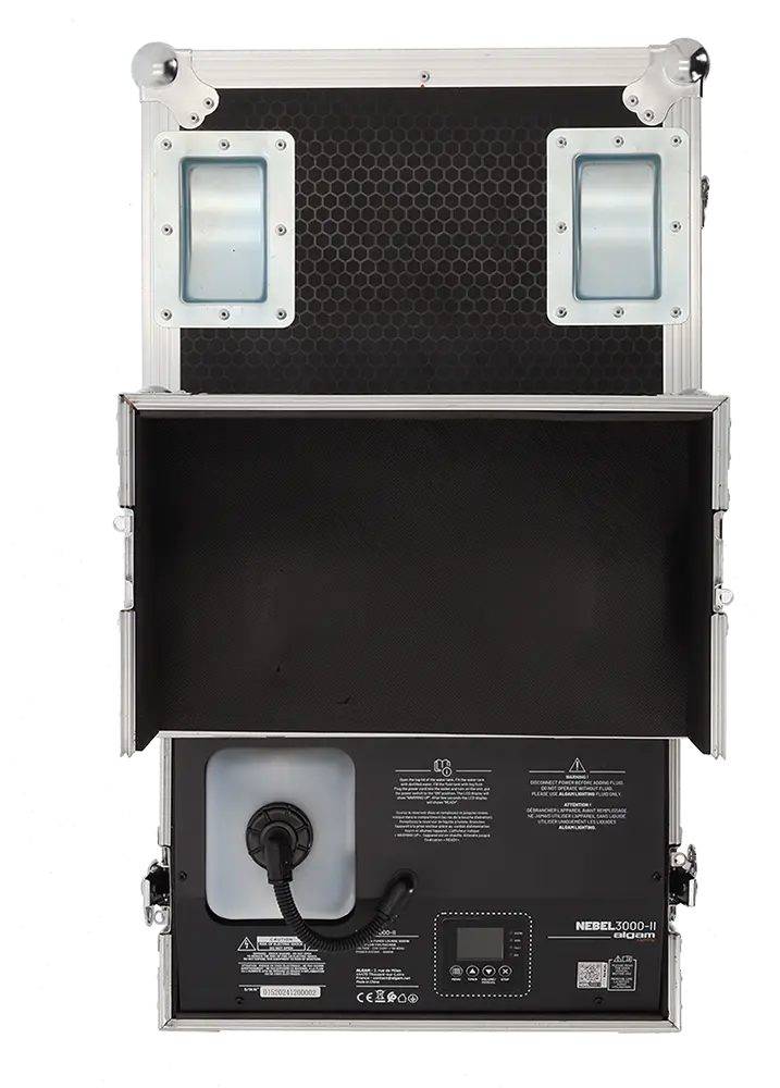 With its 3000W power output, the NEBEL3000 II is designed for intensive professional use. Its sturdy flight-case chassis and 4 wheels, two of which have integrated brakes, make it easy to transport and install. With its 15-liter water tank and 2-liter fog fluid tank, you'll enjoy comfortable autonomy for all your events.